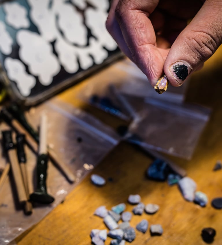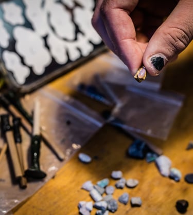 Opals are crafted in our home studio, nestled in the Lockyer Valley, by completely by self- taught hands.